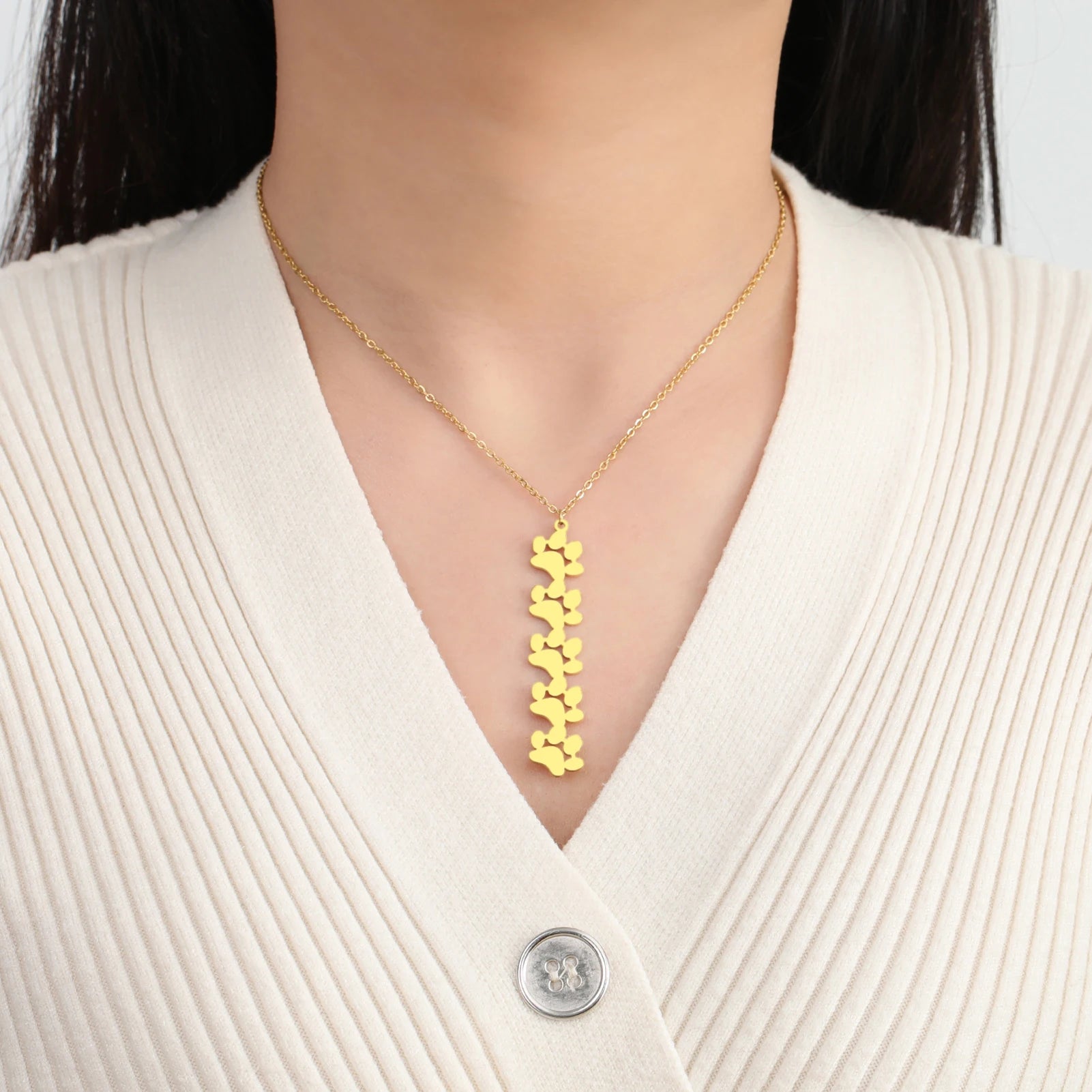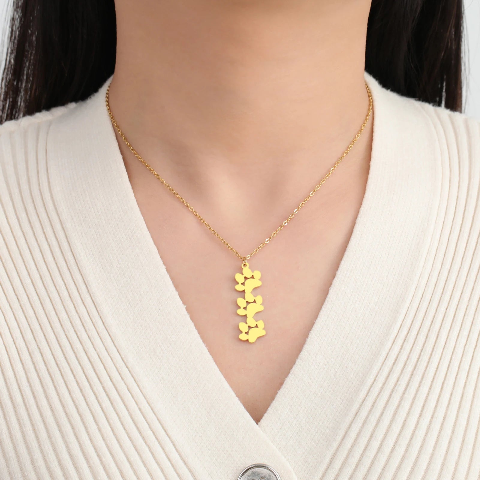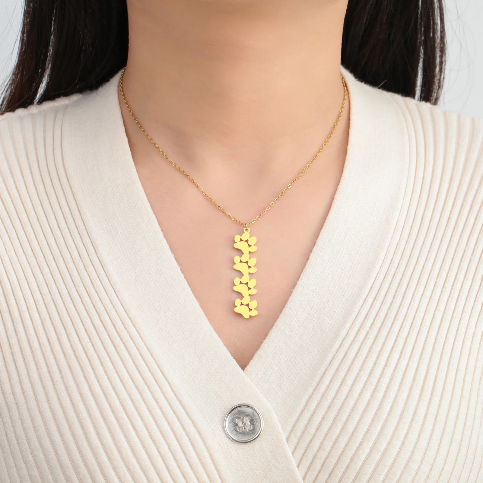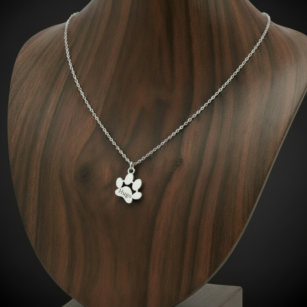 Celebrate your beloved pets with this stainless steel necklace featuring a small paw charm, it can be purchased without a name or you can customise it with up to five names. Each paw adds a personal touch, making it a playful and meaningful accessory to keep your beloved pets close to your heart. Durable and stylish, this necklace is perfect for animal lovers who want to carry a bit of their pack wherever they go.