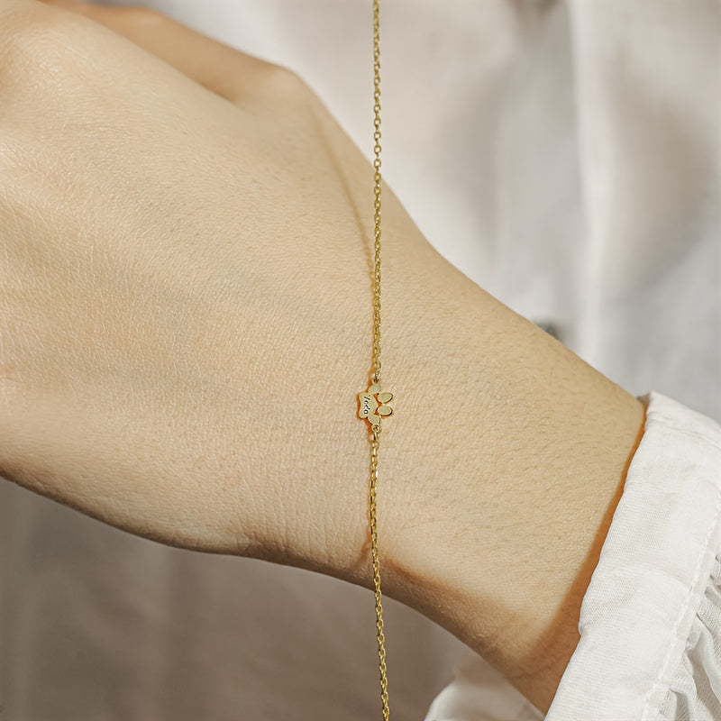 Crafted from durable stainless steel and finished with 18K gold plating on a belcher chain, this paw print bracelet can be personalised by engraving up to five names.